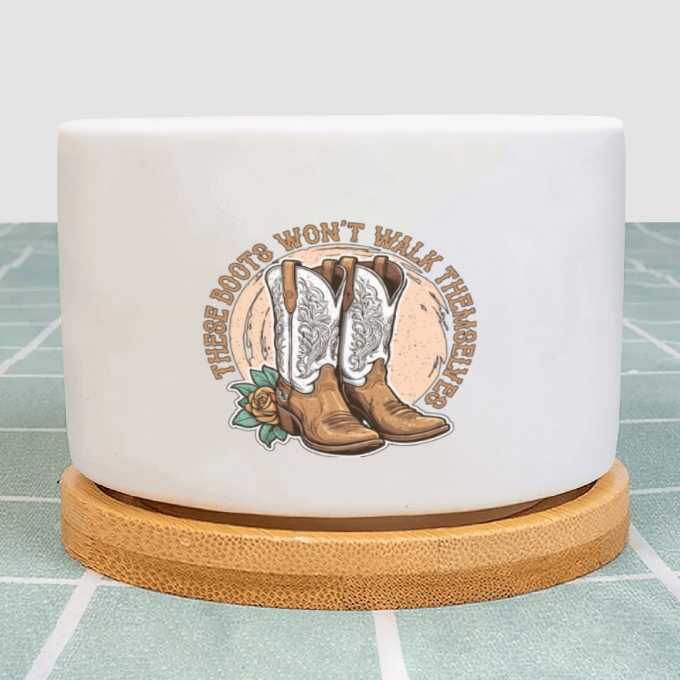 You are shopping for a stunning and trendy product Cowboy Boots & Hats These Boots Won't Walk Rodeo Plant Pots For WHITE belong theme Plant Pots at Printblur