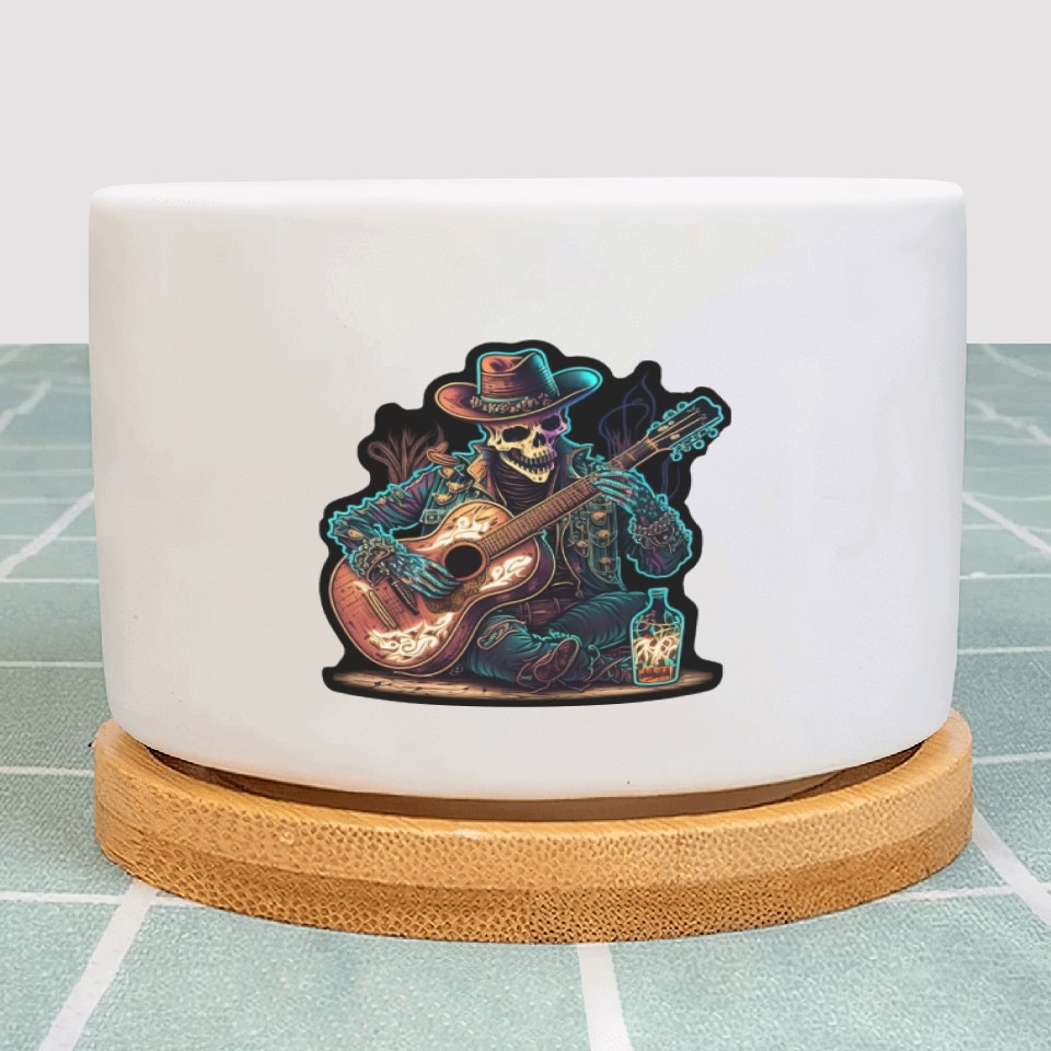 You're taking a peek at the product cowboy skeleton play guitar Plant Pots For WHITE belong theme Plant Pots at Printblur