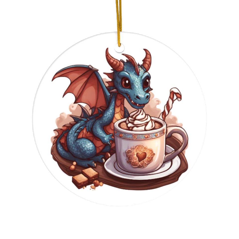 Own fascinating Cozy Dragon and Hot Chocolate Delight Ceramic Ornaments or see more Ceramic Ornaments products now from Printblur shop to enjoy your shopping time!