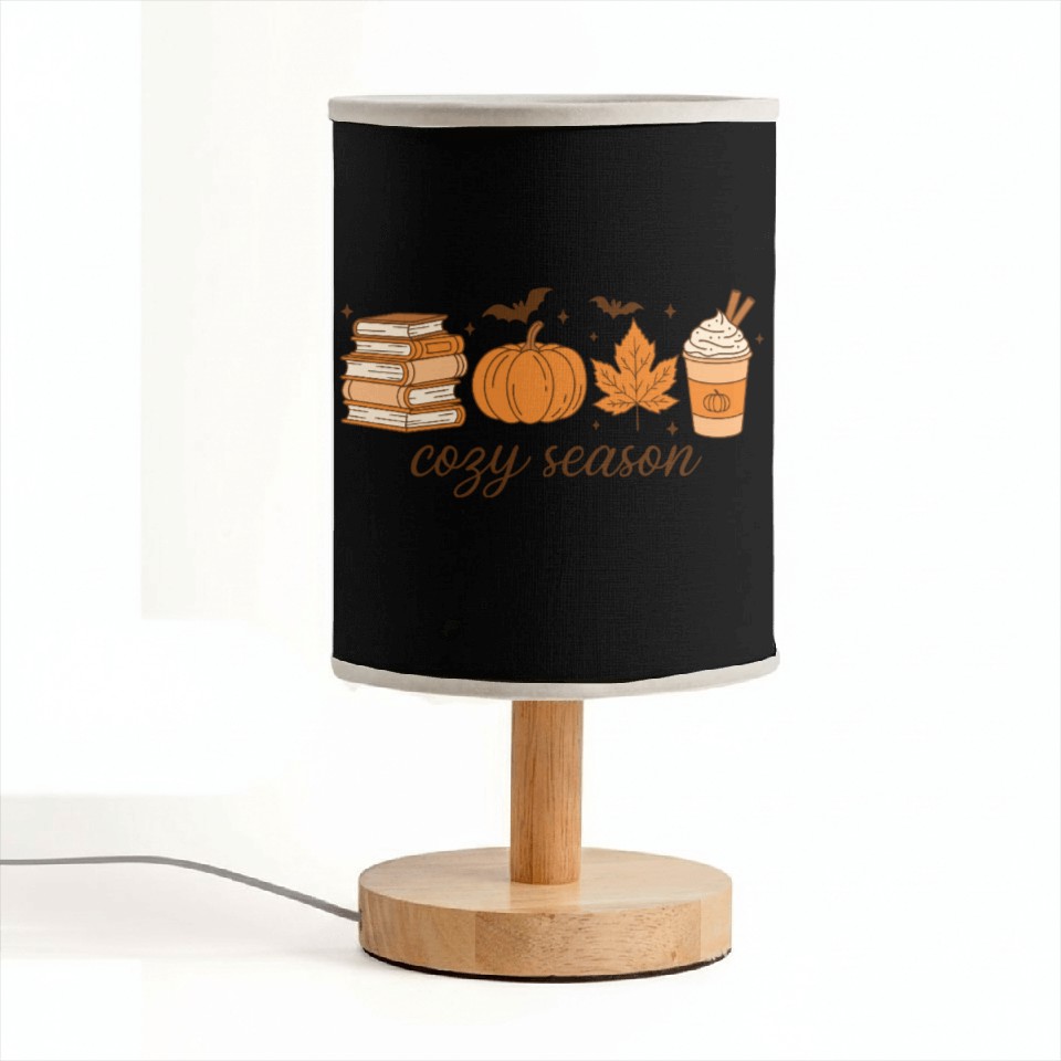 The item hot trend you're looking at is Cozy Season Pumpkin Latte Halloween Books & Leaves Fabric Lamps For Black belong theme Fabric Lamps at Printblur