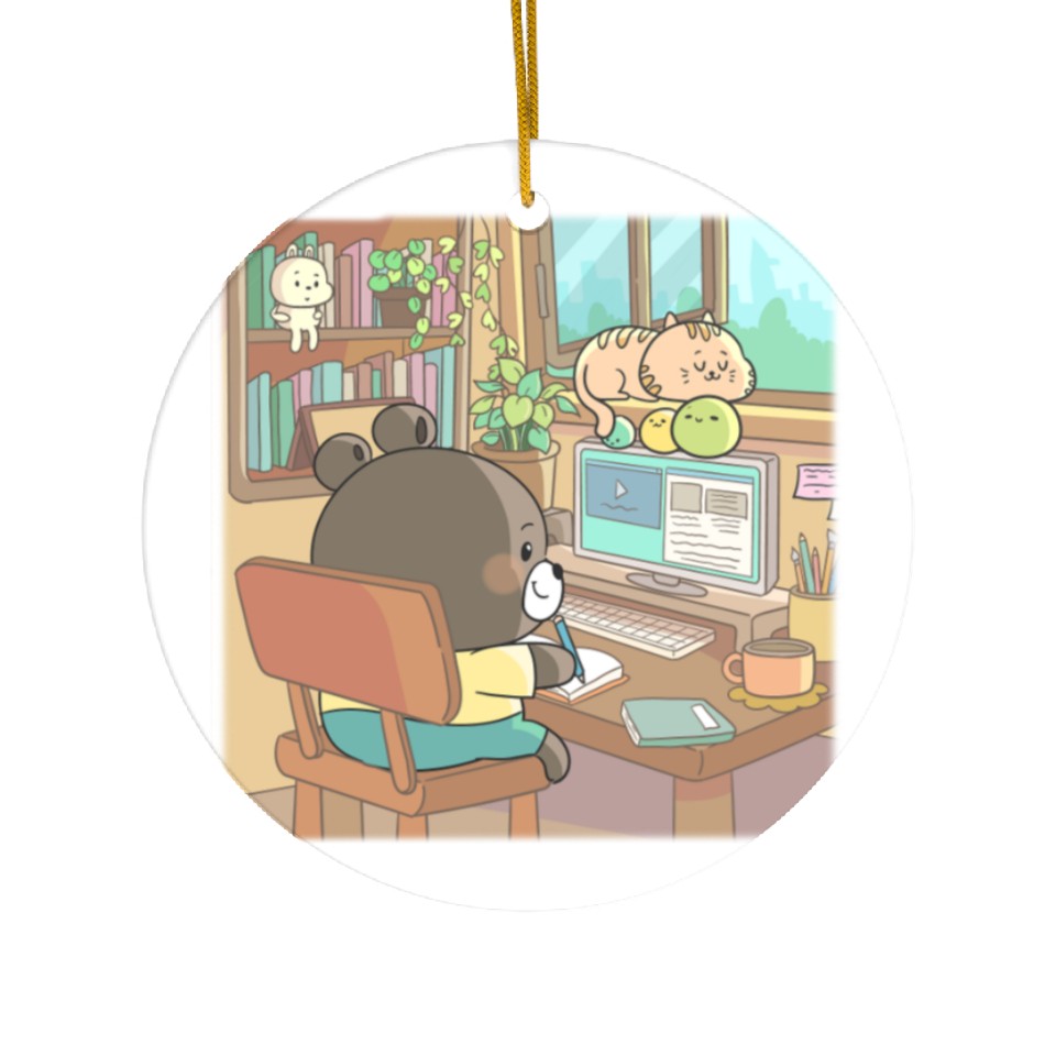 You're searching for a one-of-a-kind product Cozy teddy bear studying Ceramic Ornaments For WHITE belong theme Ceramic Ornaments at Printblur