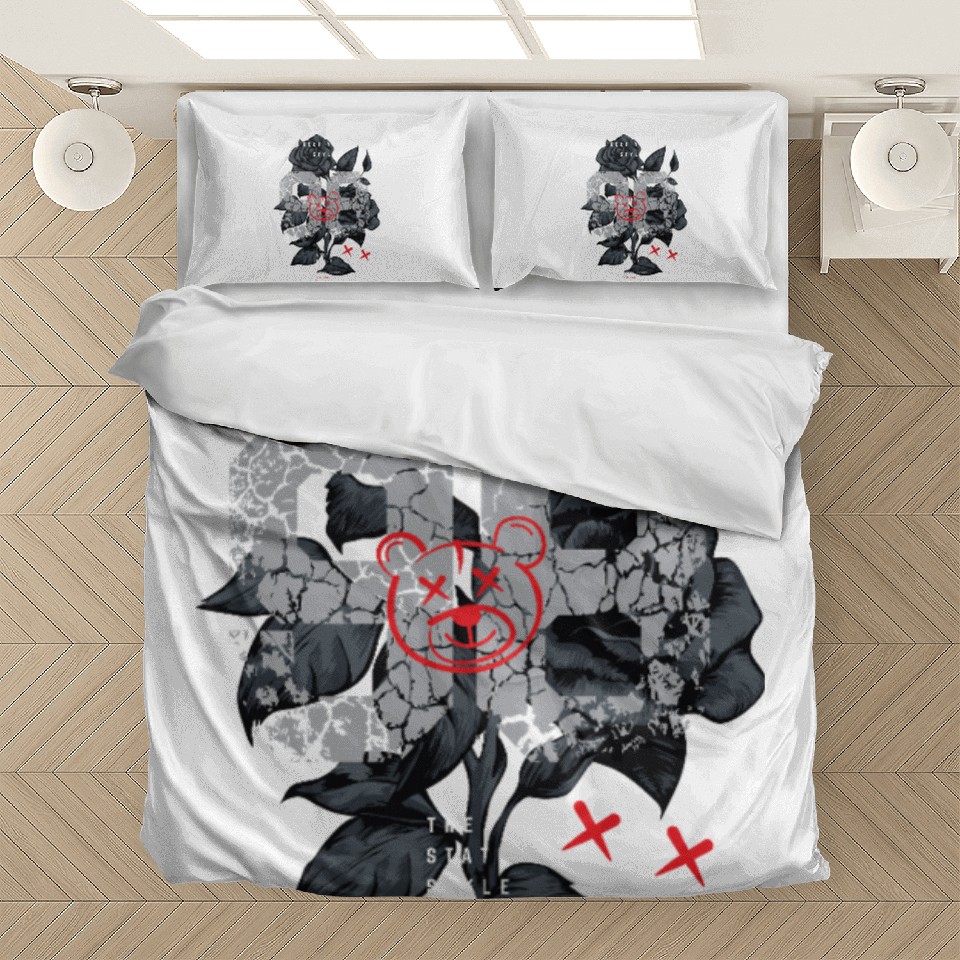 You are viewing an exclusive and elegant product Cracked Skull with Bear Mask Overlay Bedding Sets For WHITE belong theme Bedding Sets at Printblur