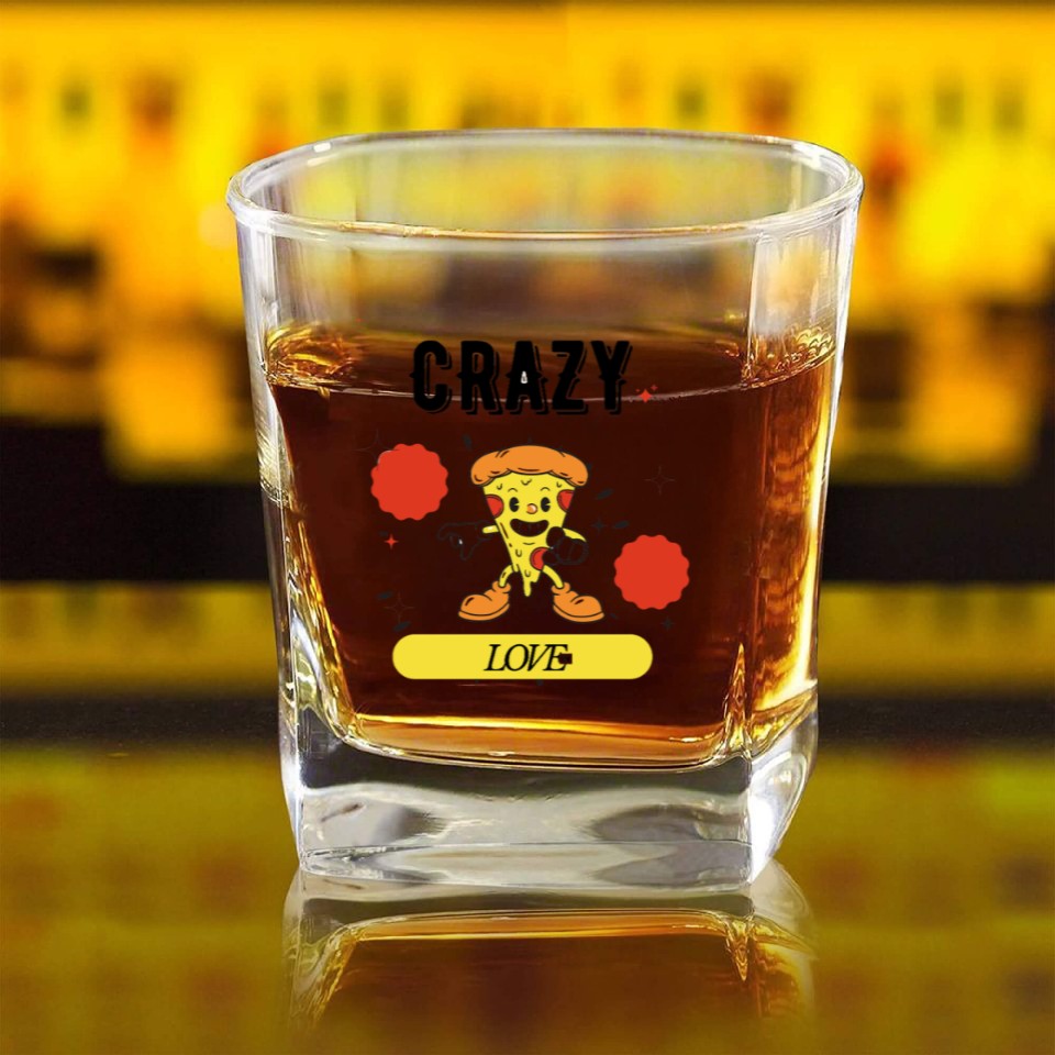 You are seeing a unique and impressive product Crazy in Love Pizza – The Happiest Slice Ever D83C DF55 Square Whiskey Glasses For belong theme Square Whiskey Glasses at Printblur