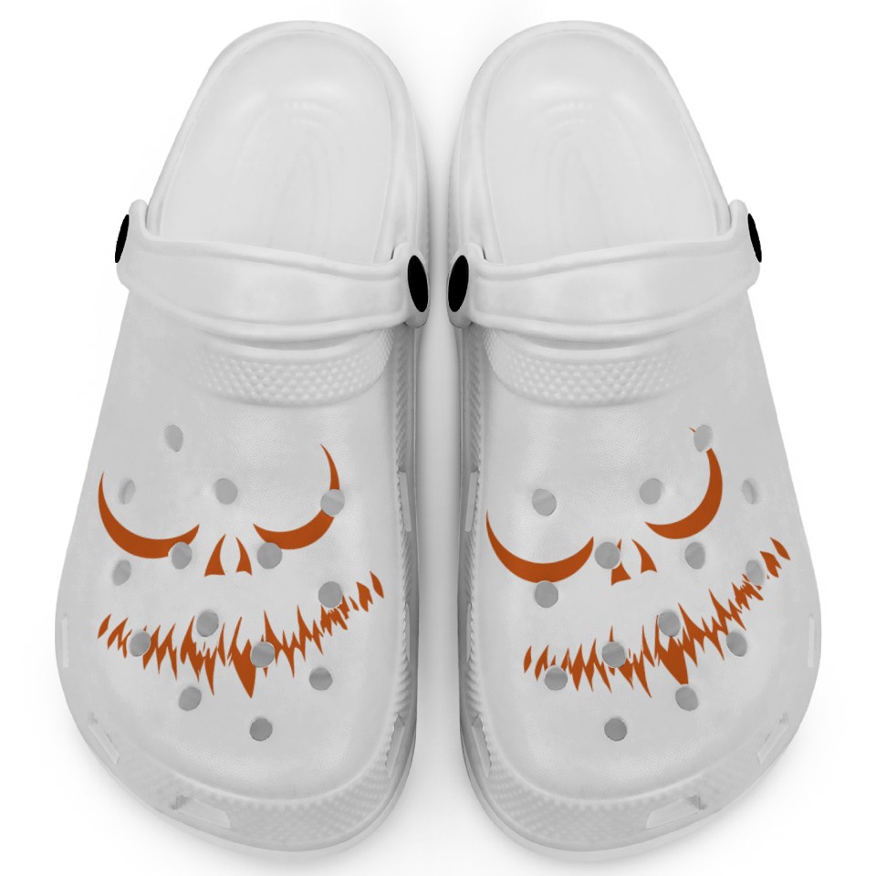 You are viewing one of the trendiest products Creepy Jack o Lantern Carved Halloween Pumpkin Clogs For Kids WHITE belong theme Clogs at Printblur
