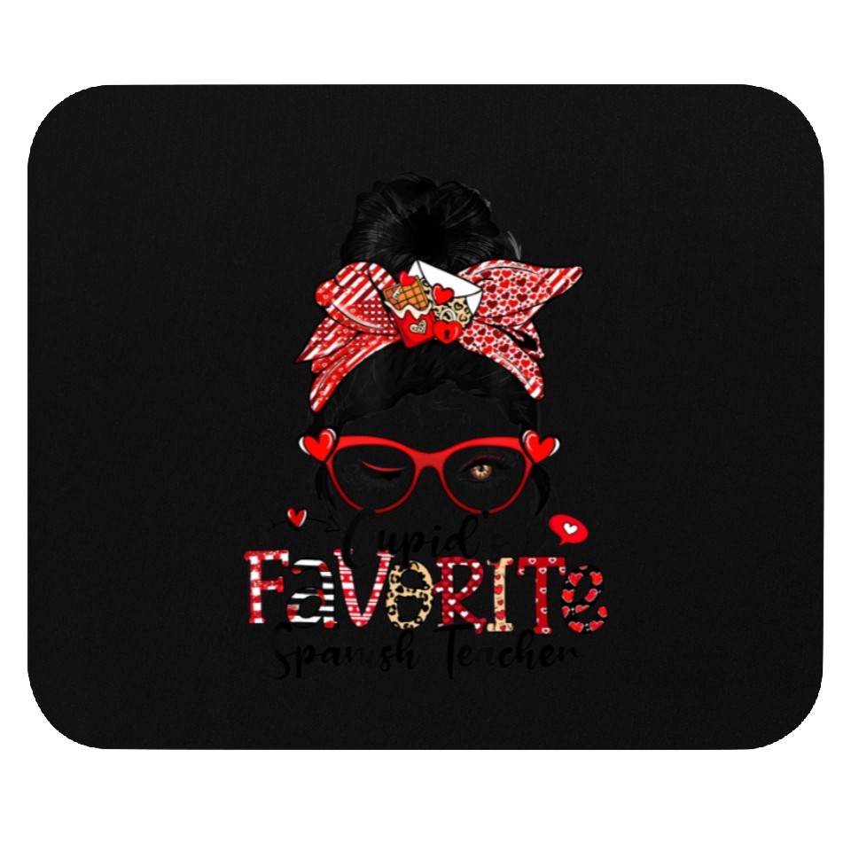 You are viewing an exclusive and elegant product Cupid s Favorite Spanish Teacher Messy Bun Mouse Pads For Black belong theme Mouse Pads at Printblur