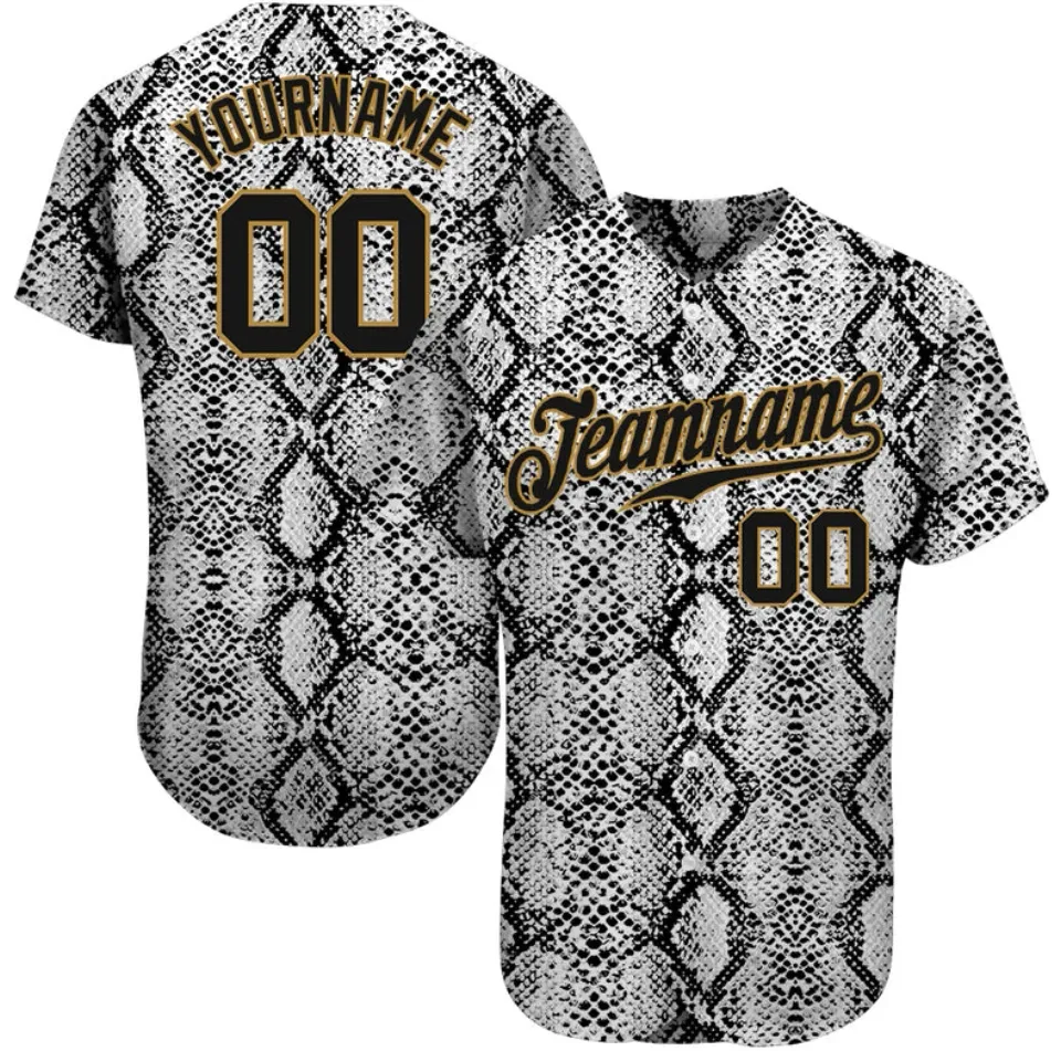 Buy eye-catching Custom Black Snakeskin Black-Old Gold 3D Pattern Design Baseball Jersey or see more Baseball Jerseys products at Printblur shop now to explore many surprises from our shop!