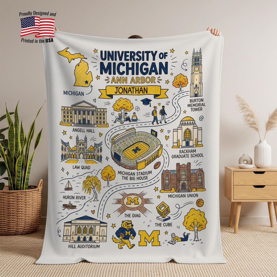 Custom College Campus Blanket, Personalized University Dorm Throw, Graduation Gift for Students, Alumni