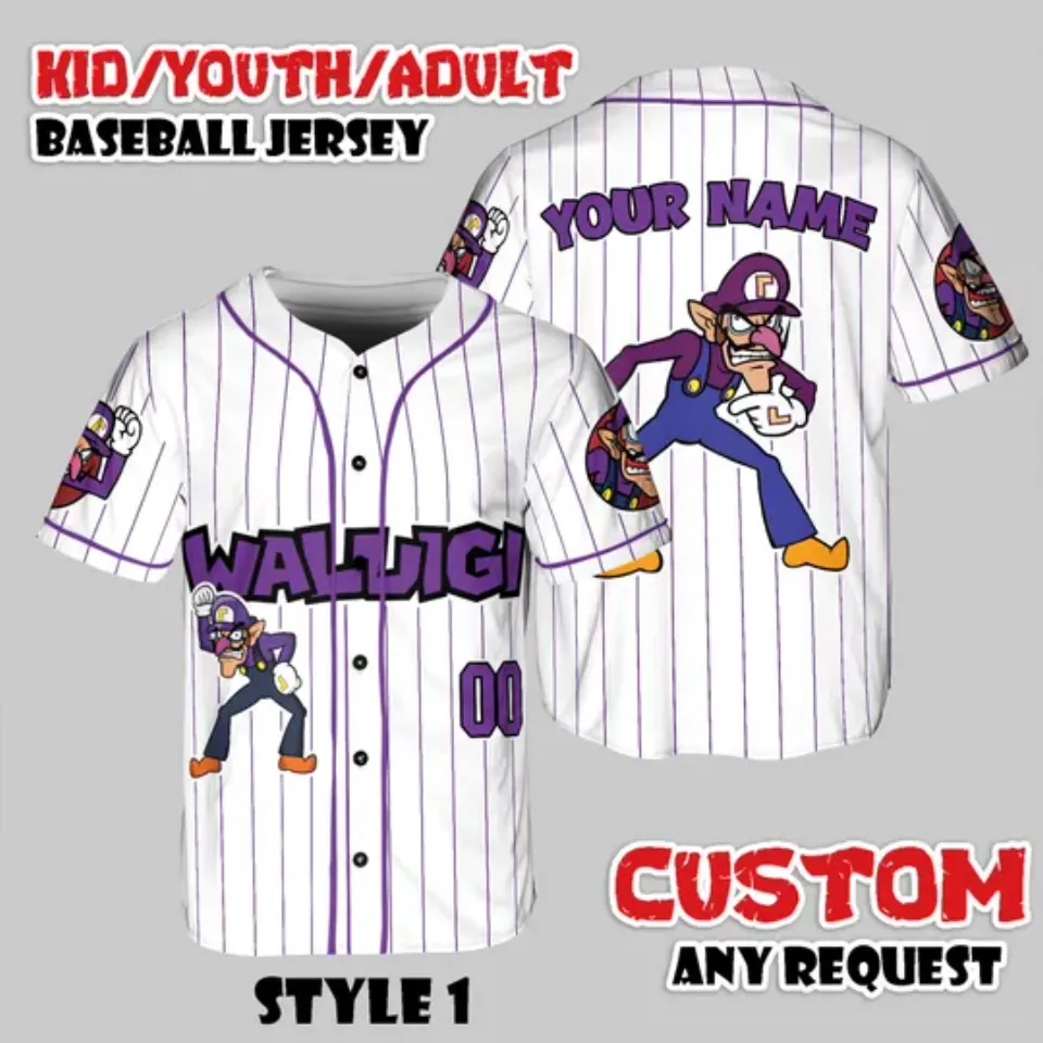 Shop for attractive Custom Waluigi Baseball Jersey, Nintendo Super Mario Game Shirt or see more Baseball Jerseys products on https://printblur.com right now!