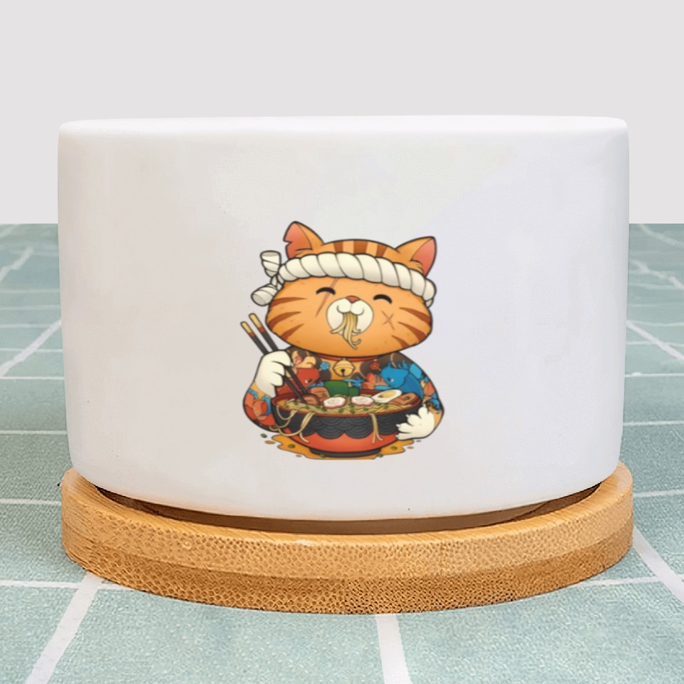 You are viewing one of the trendiest products Cute anime cat eating ramen noodles Plant Pots For WHITE belong theme Plant Pots at Printblur
