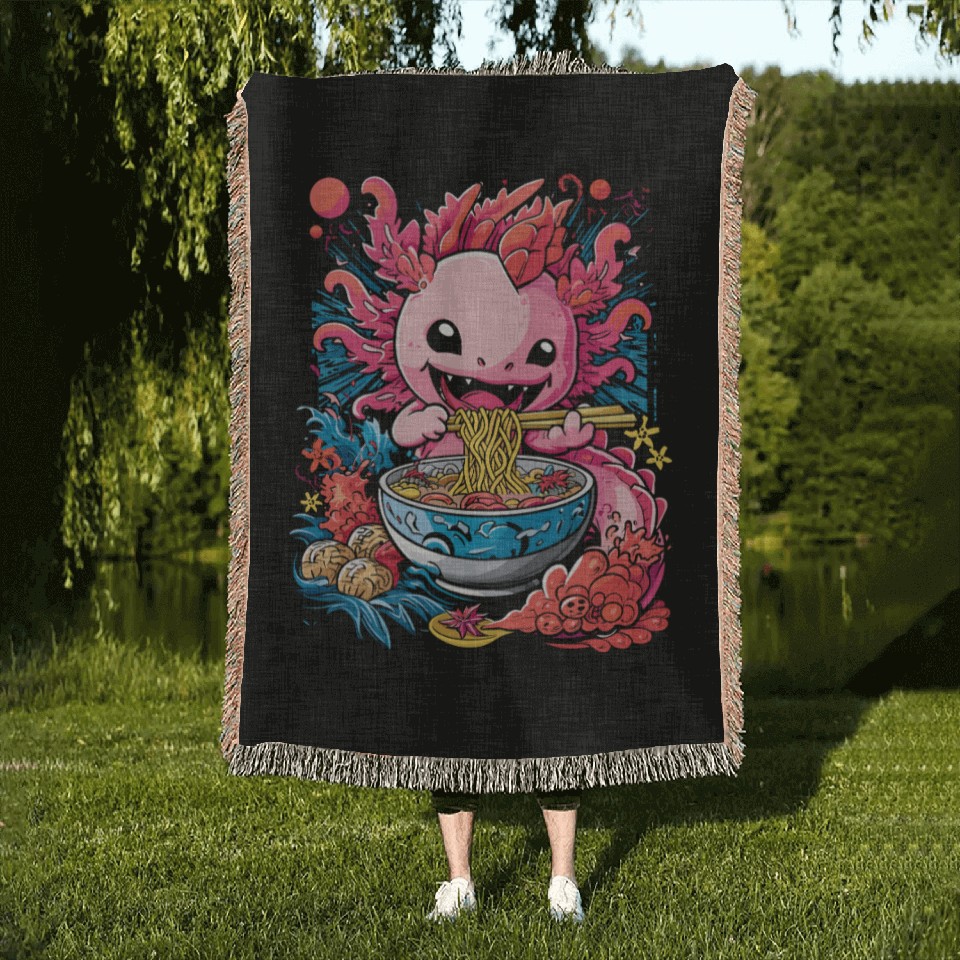 You are viewing one of the trendiest products Cute Axolotl Enjoying Bowl of Ramen in Vibrant Woven Blankets For Black belong theme Woven Blankets at Printblur