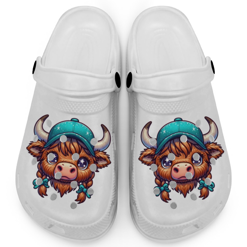 The item hot trend you're looking at is Cute Baby Highland Cow Farmer Animal Lover Clogs For Kids WHITE belong theme Clogs at Printblur