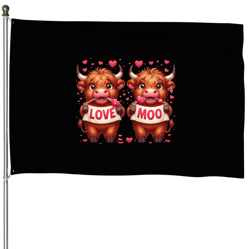 You're looking at the eye-catching product Cute cartoon valentines highland cow House Flags For Black belong theme House Flags at Printblur