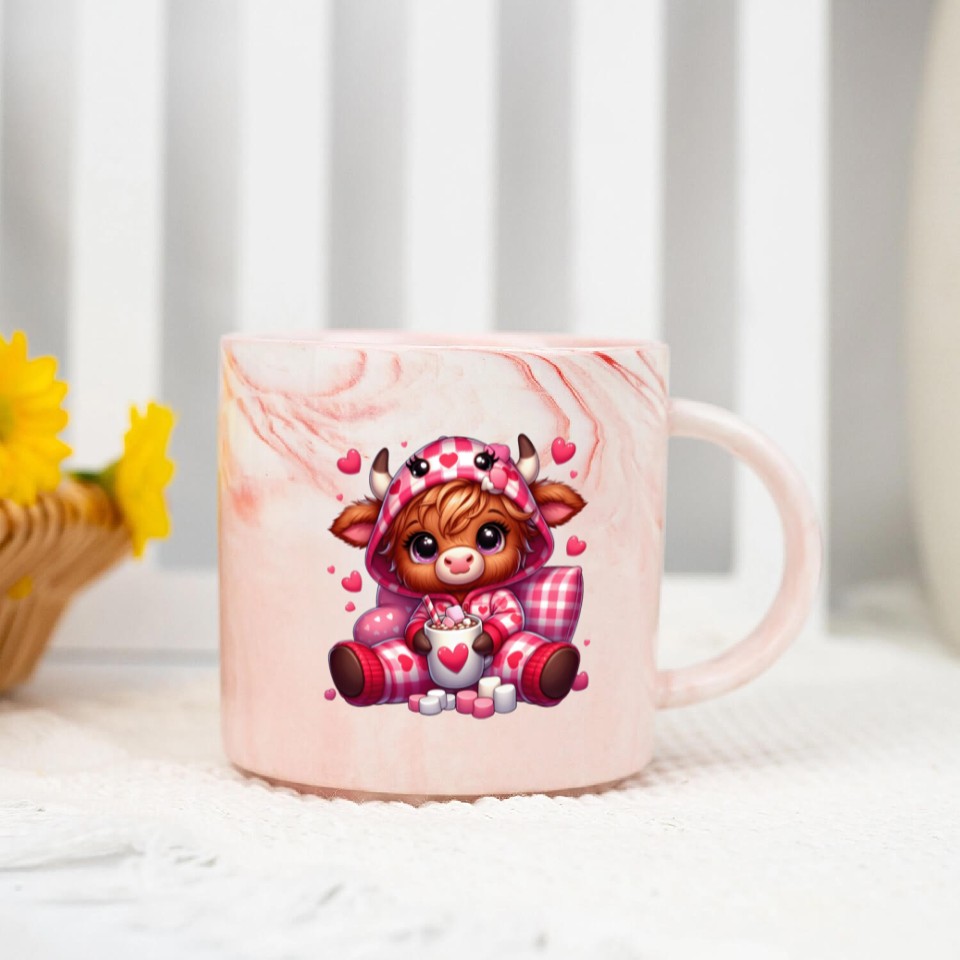 You are viewing one of the trendiest products Cute cartoon valentines highland cow Marble Mugs For Pink belong theme Marble Mugs at Printblur