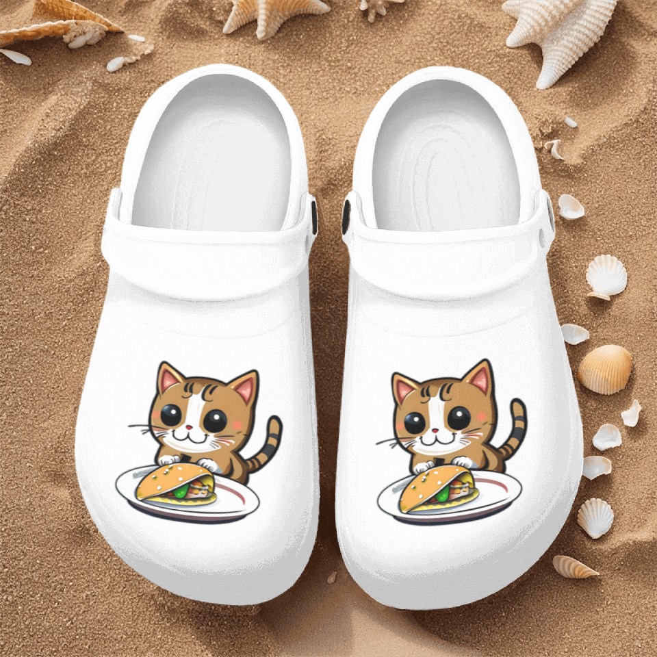 The item hot trend you're looking at is Cute Cat and Taco: A Playful Combination for Your Nurse Clogs For Men WHITE belong theme Nurse Clogs at Printblur