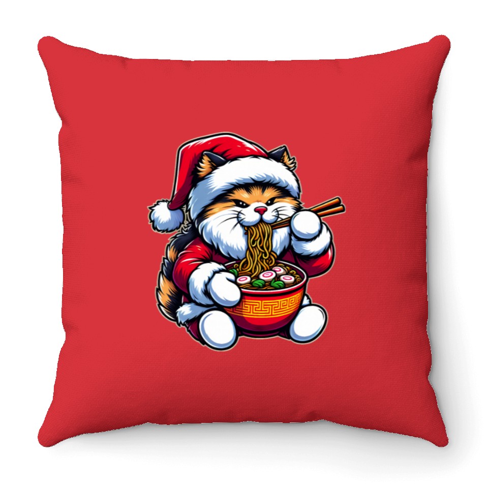 You are shopping for a stunning and trendy product Cute Cat as Santa Eating Ramen on Christmas Throw Pillows For Cover Only Red belong theme Throw Pillows at Printblur