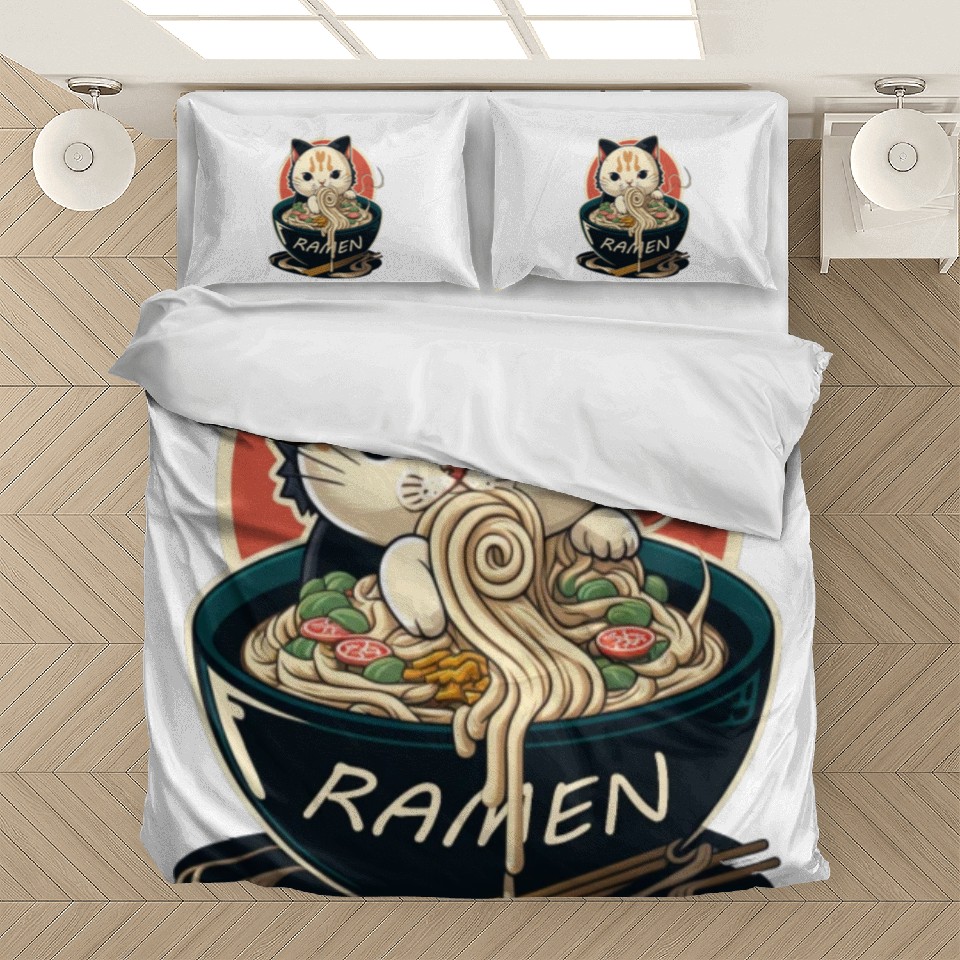 You are shopping for a stunning and trendy product Cute Cat Eating Ramen Bedding Sets For WHITE belong theme Bedding Sets at Printblur