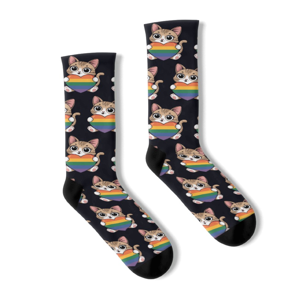 Shop for attractive Cute Cat Holding Rainbow Heart LGTBQ Socks or see more Socks products on https://printblur.com right now!