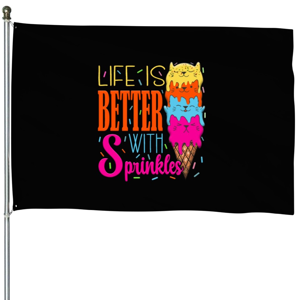You are viewing an exclusive and elegant product Cute Cats Life Is Better With Sprinkles Cat Lovers House Flags For Black belong theme House Flags at Printblur