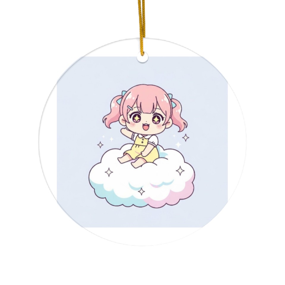 You are contemplating one of the best-selling products Cute Chibi Girl on Cloud Illustration Ceramic Ornaments For WHITE belong theme Ceramic Ornaments at Printblur