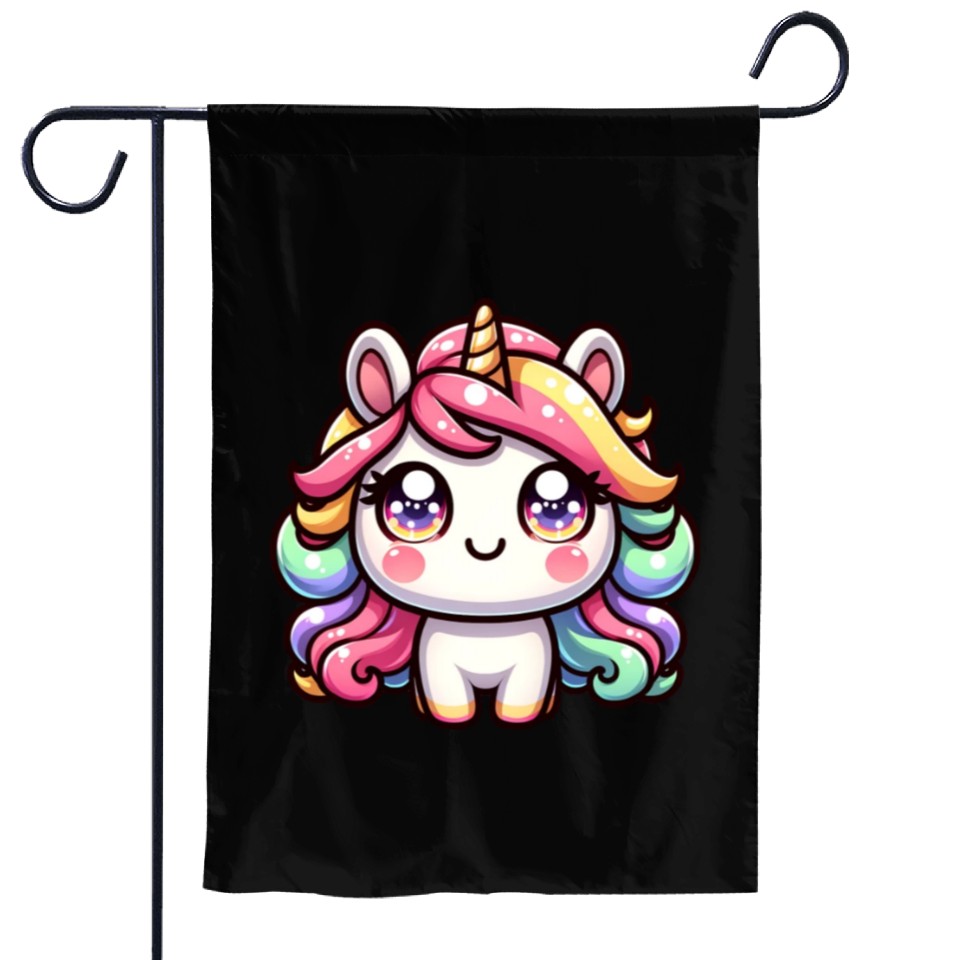 Shop for attractive Cute chibi Unicorn with colorful hair Garden Flags or see more Garden Flags products on https://printblur.com right now!