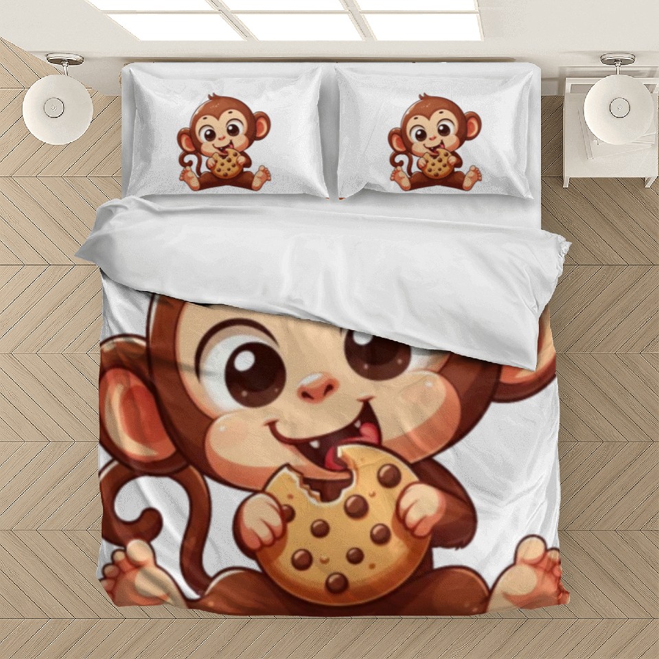You're taking a peek at the product Cute Chimpanzee with Cookie Cartoon Bedding Sets For WHITE belong theme Bedding Sets at Printblur