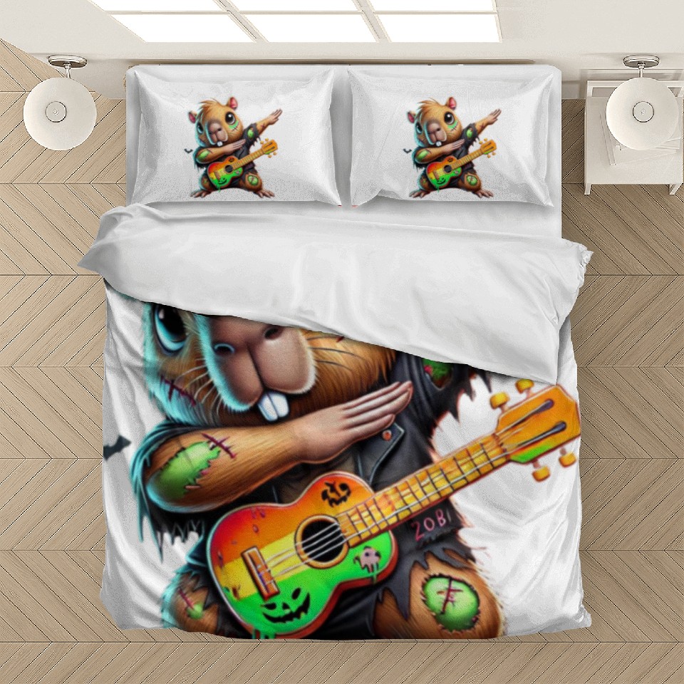 Buy eye-catching Cute Dabbing Capybara Zombie Squad Guitar Hallowee Bedding Sets or see more Bedding Sets products at Printblur shop now to explore many surprises from our shop!