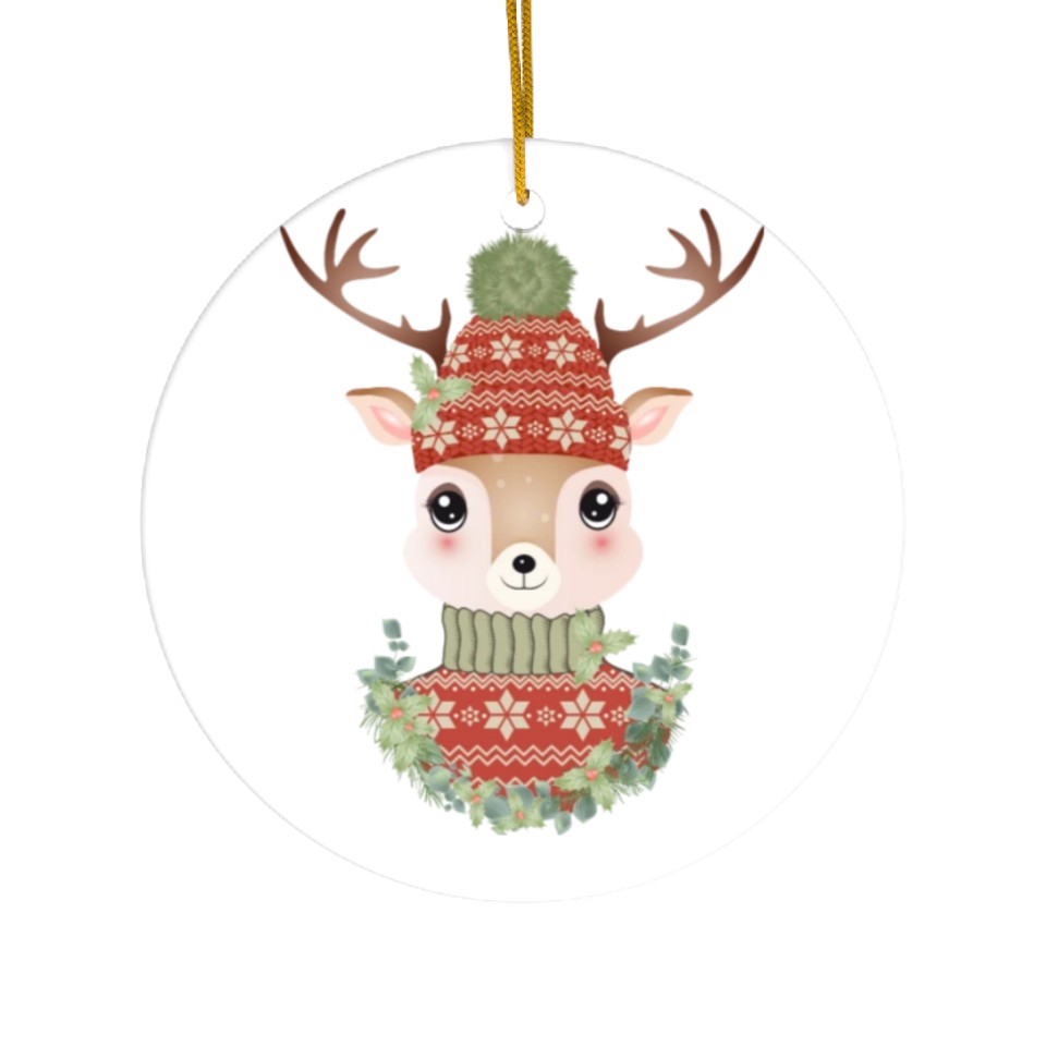 You're looking at the eye-catching product cute deer with sweater and Christmas wreath Ceramic Ornaments For WHITE belong theme Ceramic Ornaments at Printblur