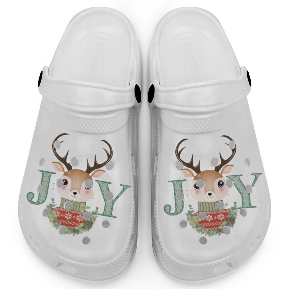 You are viewing one of the trendiest products cute deer with sweater and Christmas wreath Clogs For Kids WHITE belong theme Clogs at Printblur