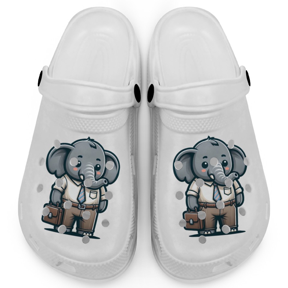 You are seeing a unique and impressive product Cute Elephant Teacher Clogs For Kids WHITE belong theme Clogs at Printblur