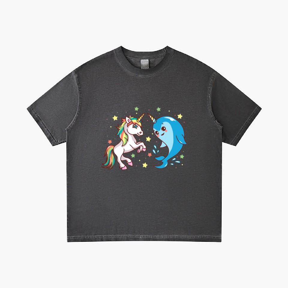 The item hot trend you're looking at is Cute Funny Horned Narwhal And Unicorn Friends Gradient T Shirts For Men Washed Black belong theme Gradient T-Shirts at Printblur
