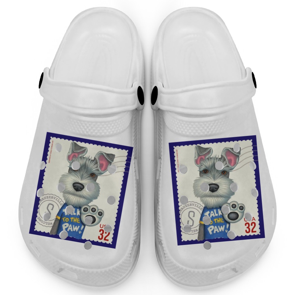 You're looking at the eye-catching product Cute Funny Schnauzer Stamp Clogs For Kids WHITE belong theme Clogs at Printblur