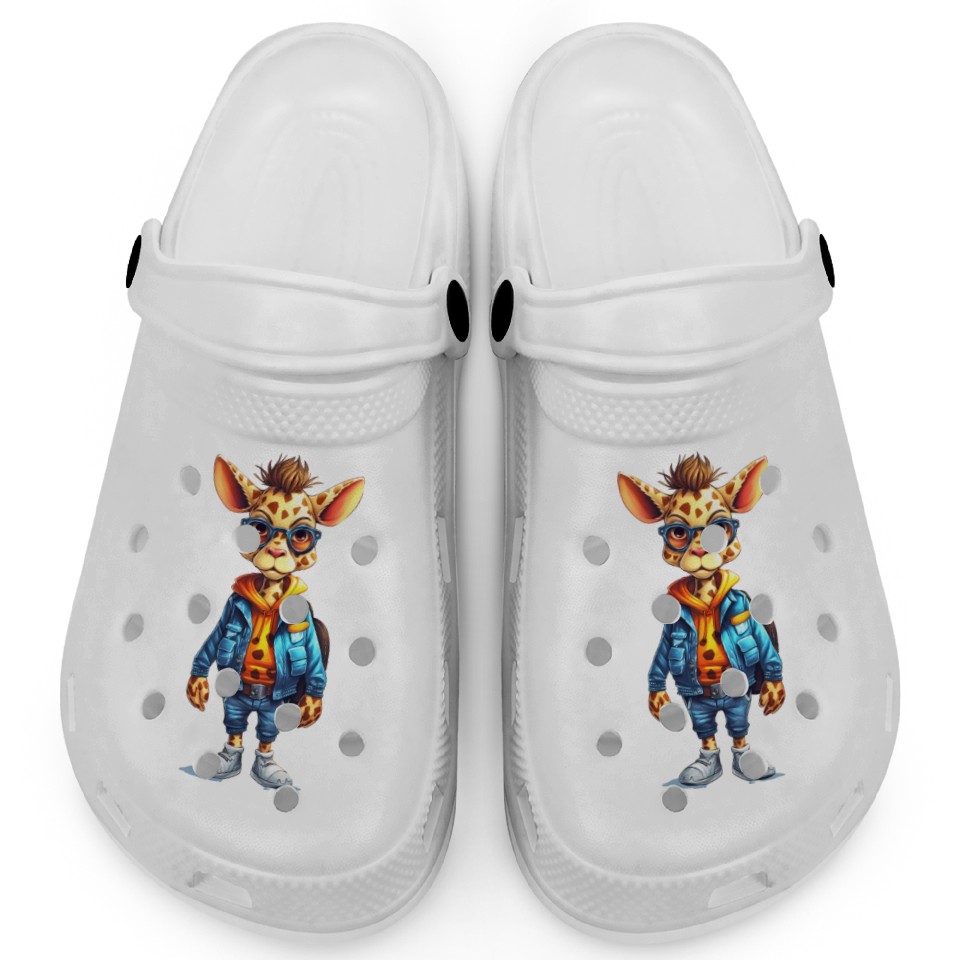 You're taking a peek at the product Cute Giraffe Cartoon Clogs For Kids WHITE belong theme Clogs at Printblur
