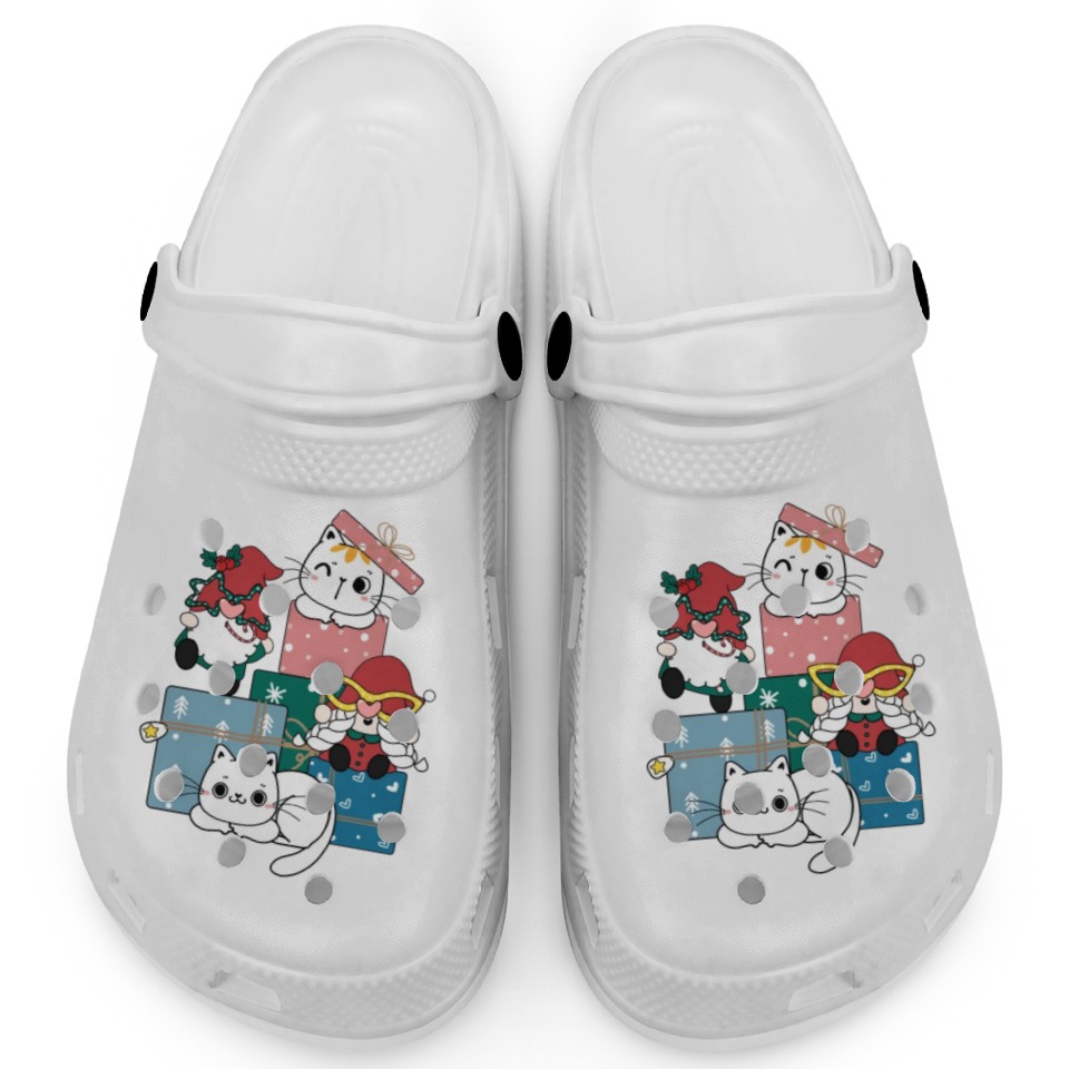 Buy stunning cute gnome and kitty cats on present gift box Clogs or see more Clogs products at Printblur right now to receive many amazing discounts!