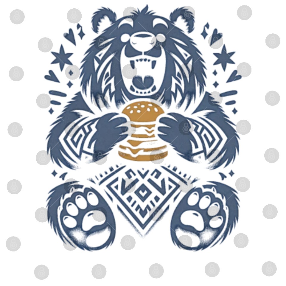 You are seeing a unique and impressive product Cute Grizzly with Hamburger, Blue Digital Files For WHITE belong theme Digital Files at Printblur