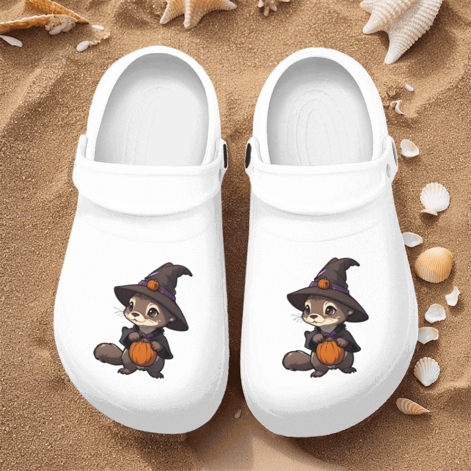 You are contemplating one of the best-selling products Cute Halloween otter with a witch hat. Nurse Clogs For Men WHITE belong theme Nurse Clogs at Printblur