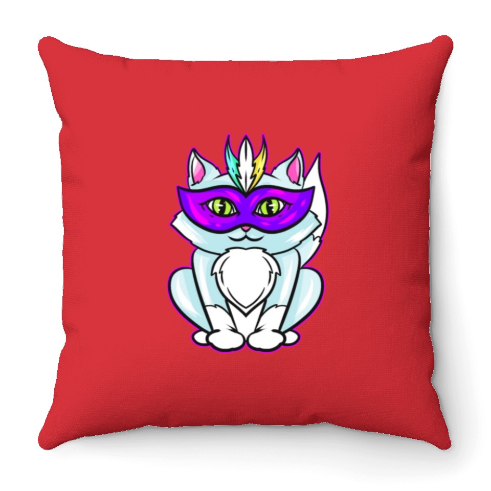 The item hot trend you're looking at is Cute Kawaii Cat With Purple Mask For Mardi Gras Throw Pillows For Cover Only Red belong theme Throw Pillows at Printblur