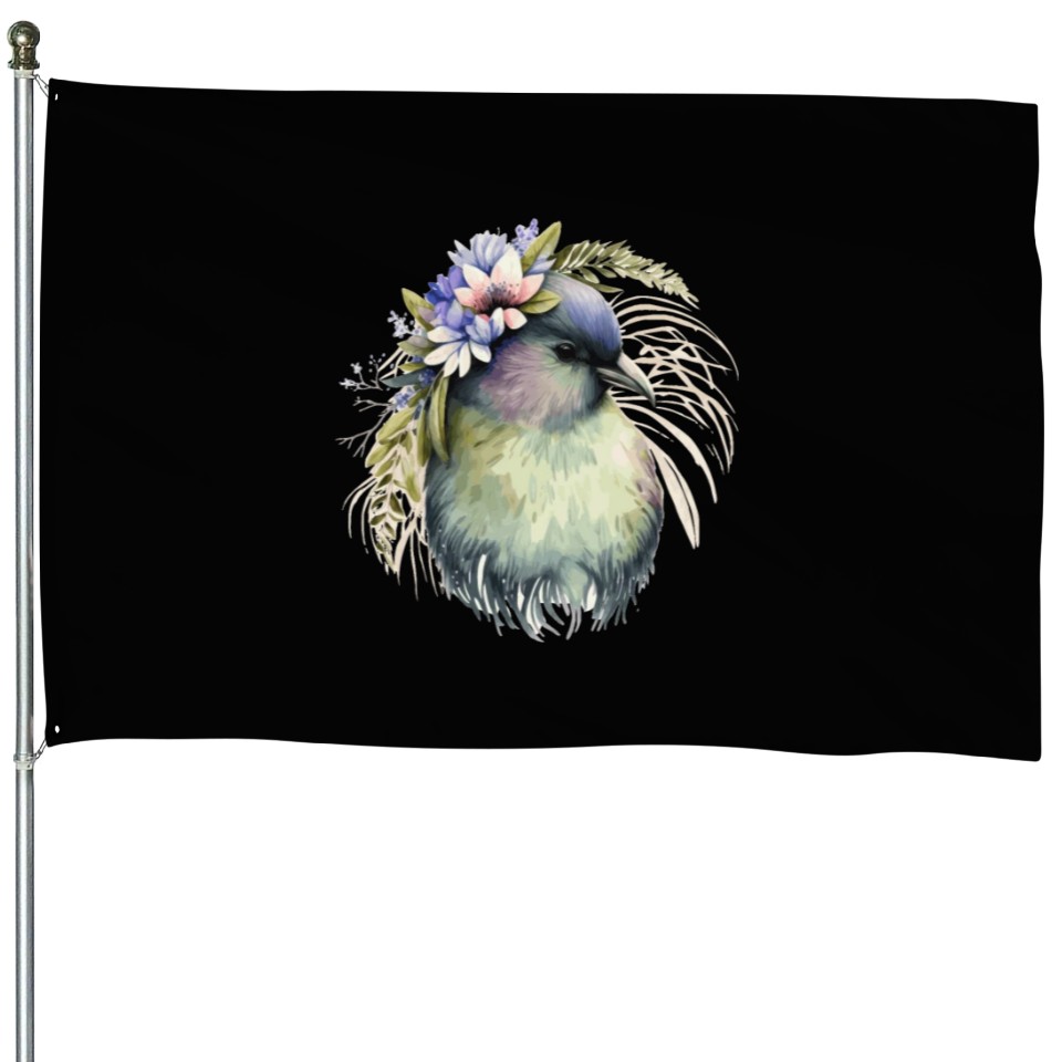 You are seeing a unique and impressive product Cute Kiwi Bird Flower Crown Floral Exotic Birds House Flags For Black belong theme House Flags at Printblur