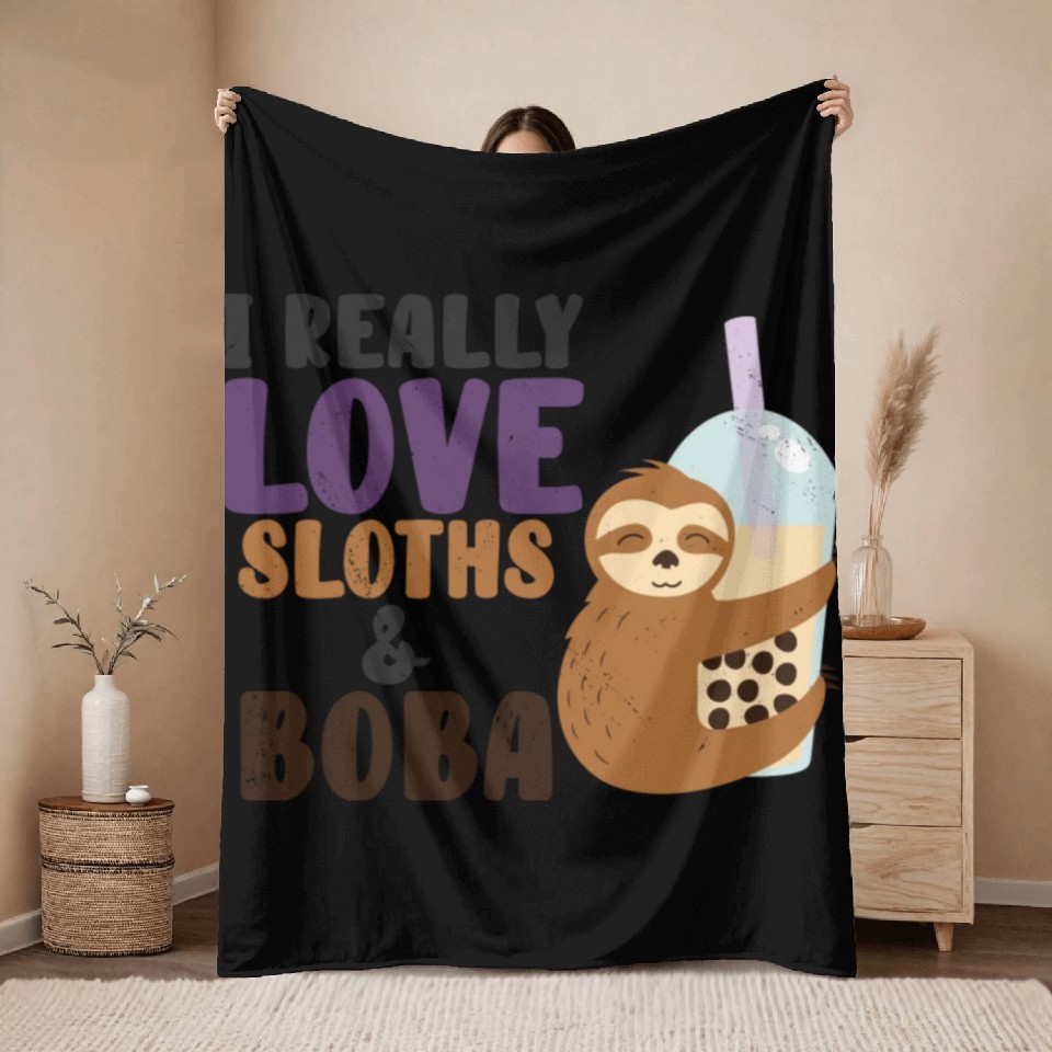 Buy eye-catching Cute Lazy Sloth Boba Tea Sweet Bubble Tea Throw Blankets or see more Throw Blankets products at Printblur shop now to explore many surprises from our shop!