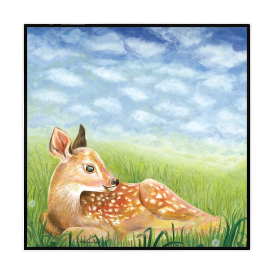You are shopping for a stunning and trendy product Cute Little Fawn in the Grass Illustration Mahjong Mats For Black belong theme Mahjong Mats at Printblur