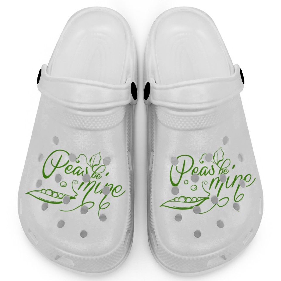 The item hot trend you're looking at is Cute Love Engagement And Wedding Quotes With Peas Clogs For Kids WHITE belong theme Clogs at Printblur