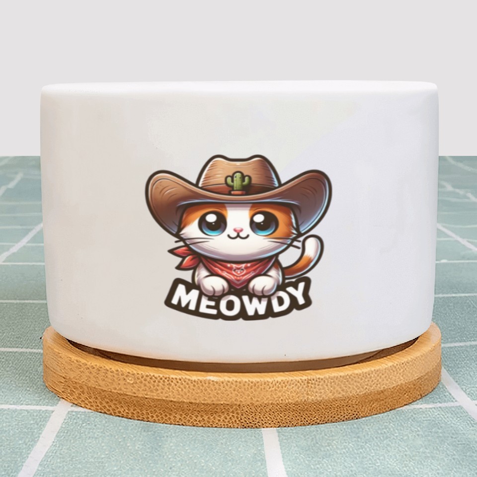 Buy stunning Cute Meowdy Cat Cowboy Pun Plant Pots or see more Plant Pots products at Printblur right now to receive many amazing discounts!
