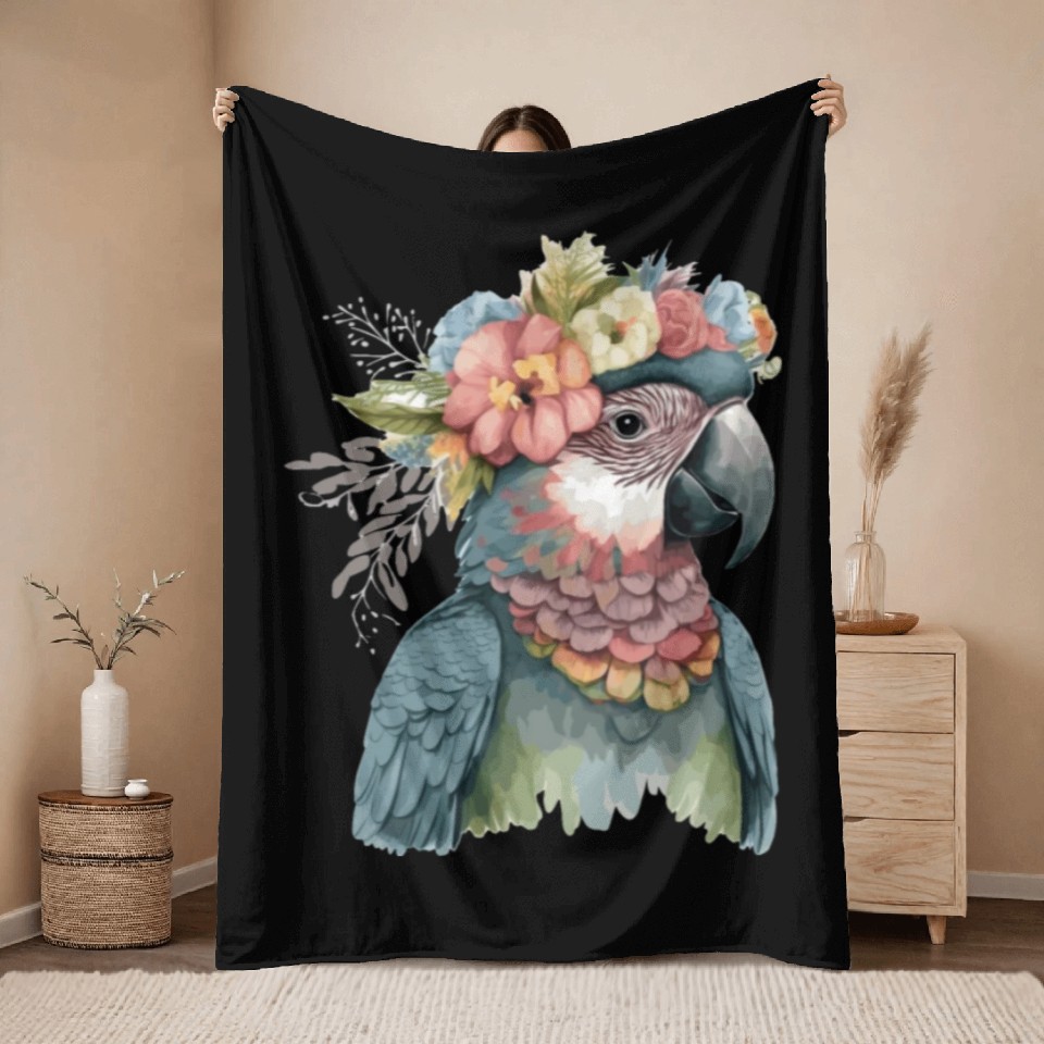 Shop for impressive Cute Parrot Macaw Bird Flower Crown Pet Birds Throw Blankets or see more Throw Blankets products right now on Printblur to enjoy your happiness!