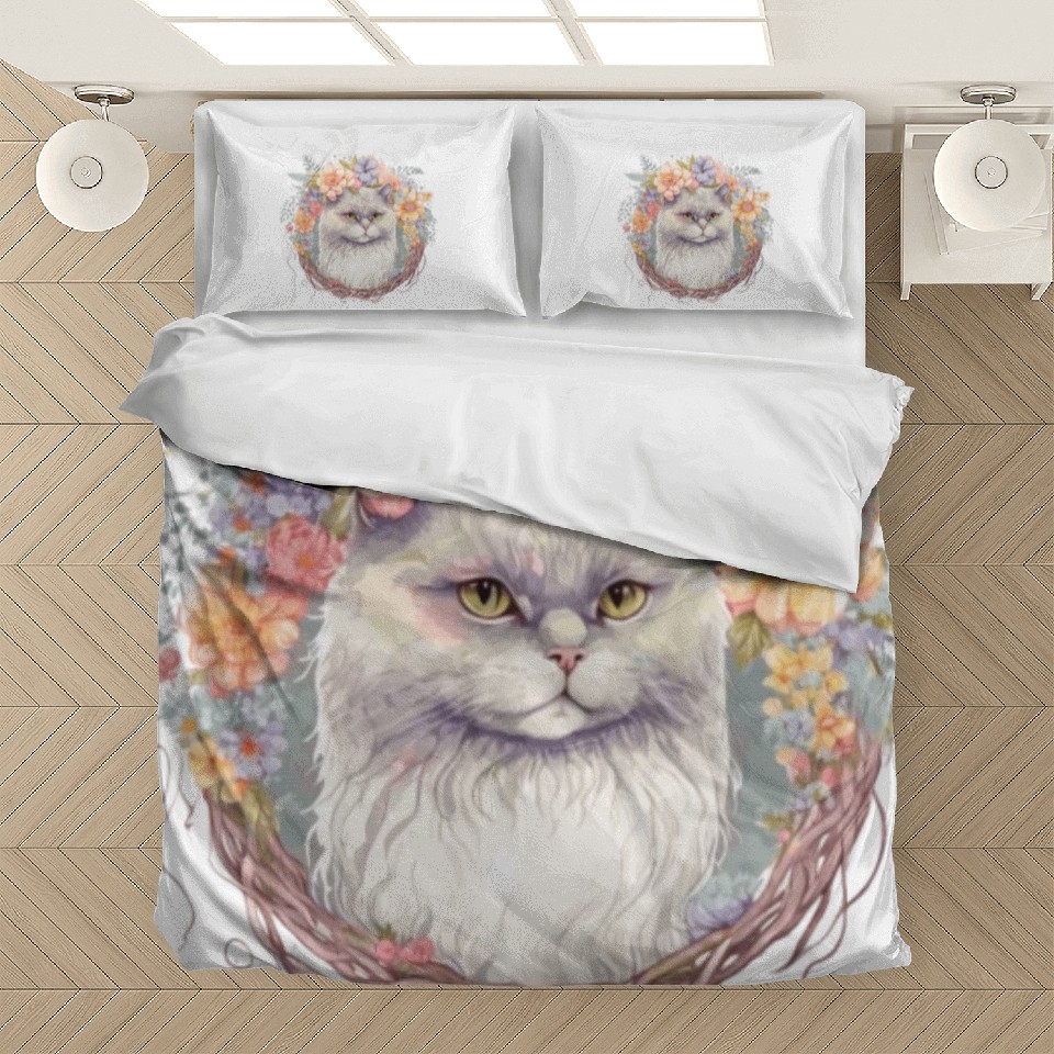 The item hot trend you're looking at is Cute Persian Cat Flower Crown Cats Pet Kitten Bedding Sets For WHITE belong theme Bedding Sets at Printblur