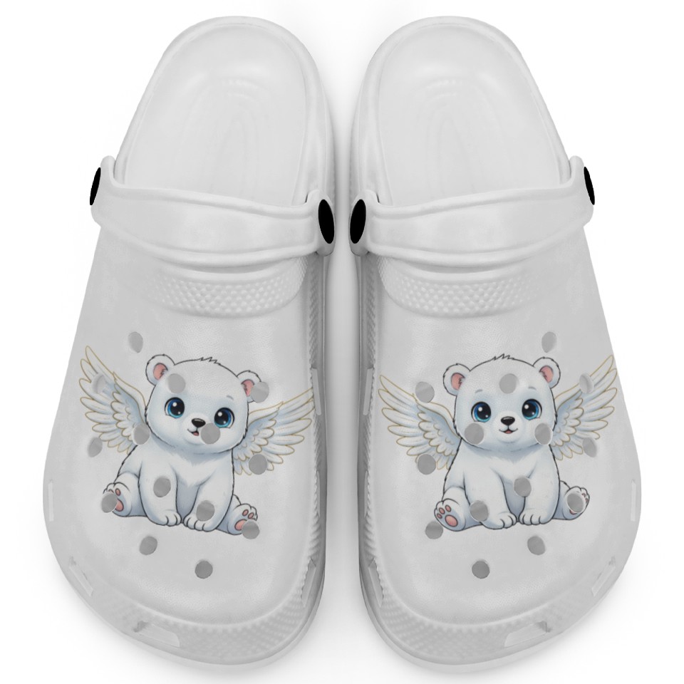 You're taking a peek at the product Cute polar bear angel with wings smiling cartoon Clogs For Kids WHITE belong theme Clogs at Printblur