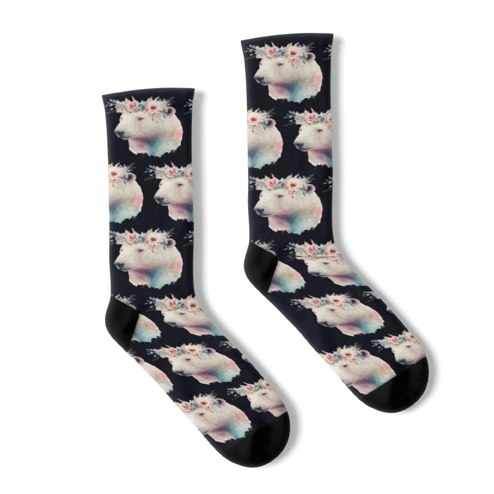 You're looking at the eye-catching product Cute Polar Bear Flower Crown Animal Lovers Socks For Black belong theme Socks at Printblur