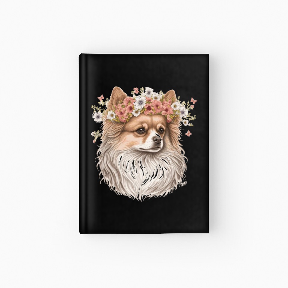 You're taking a peek at the product Cute Pomeranian Pom Flower Crown Pet Dog Breed Flo Hardcover Journal For Black belong theme Hardcover Journal at Printblur