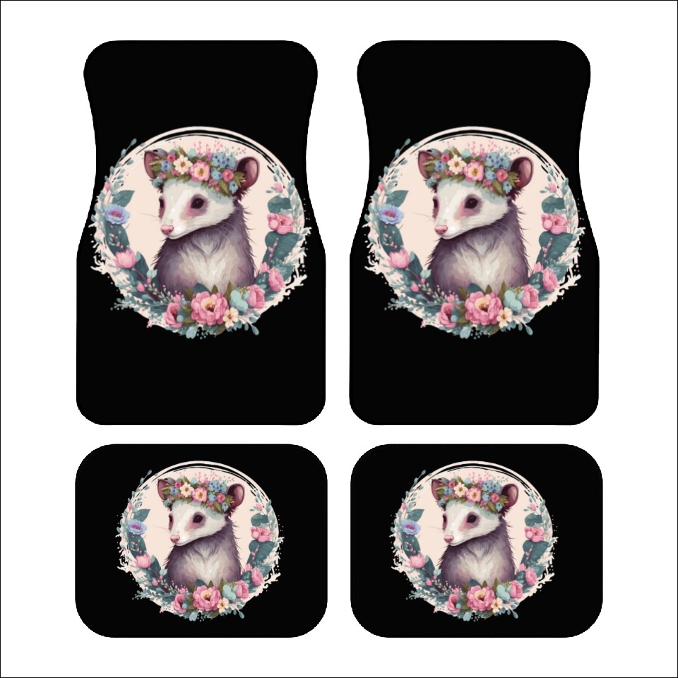 You are shopping for a stunning and trendy product Cute Possum Flower Crown Floral Watercolor Car Mats For Black belong theme Car Mats at Printblur