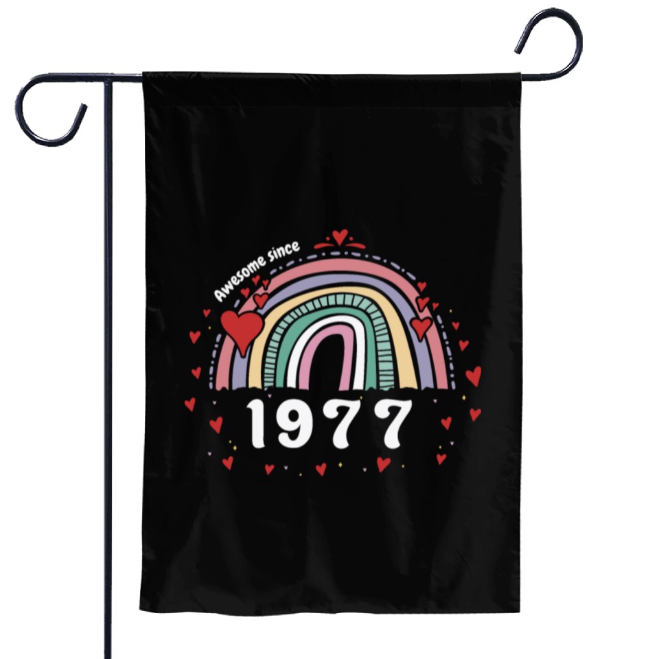Shop for attractive Cute Rainbow Awesome 1977 - 46th Birthday w/ Garden Flags or see more Garden Flags products on https://printblur.com right now!