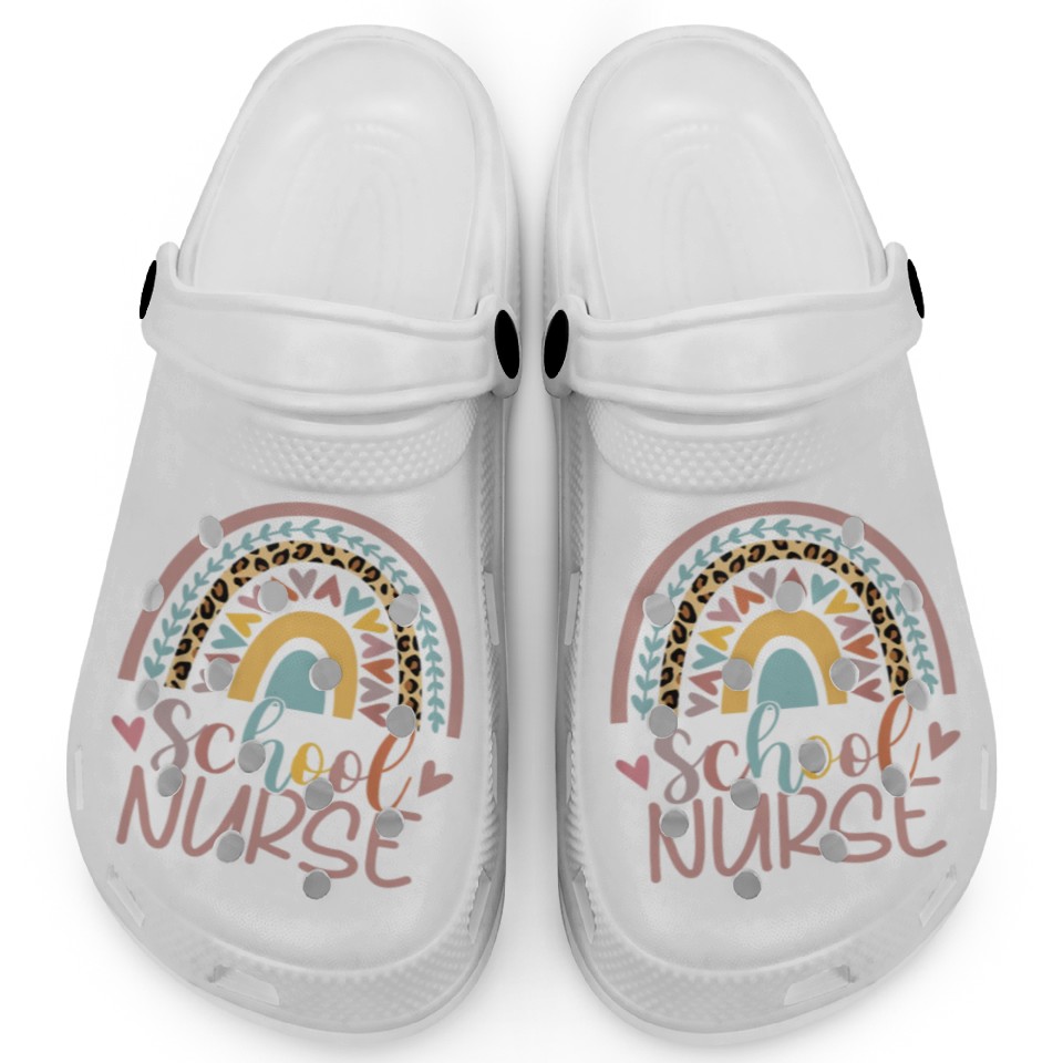 Shop for impressive Cute Rainbow Leopard Print School Nurse Back Clogs or see more Clogs products right now on Printblur to enjoy your happiness!