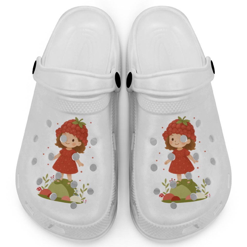 The item hot trend you're looking at is Cute Raspberry Girl Illustration Clogs For Kids WHITE belong theme Clogs at Printblur